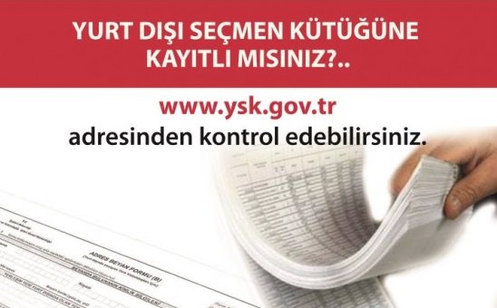 Vatandaşlarımız, www.ysk.gov.tr internet sitesi üzerinden yurtdışı seçmen durumlarını sorgulayabilmektedir.